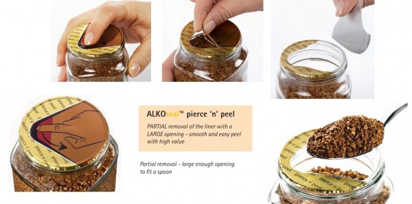 Τη λύση σε αυτό το πρόβλημα ήρθε να δώσει μια καινοτομία του Γερμανικού Οίκου Meyer Seals Gmbh, ένα καινοτόμο liner Pierce n Peel , το οποία αφορά άνοιγμα του αλουμινόφυλλου στο πάνω μέρος του βάζου μέσω διάτρησης του με laser σε συγκεκριμένο σημείο και κατόπιν σταδιακής αποφλοίωσης του.